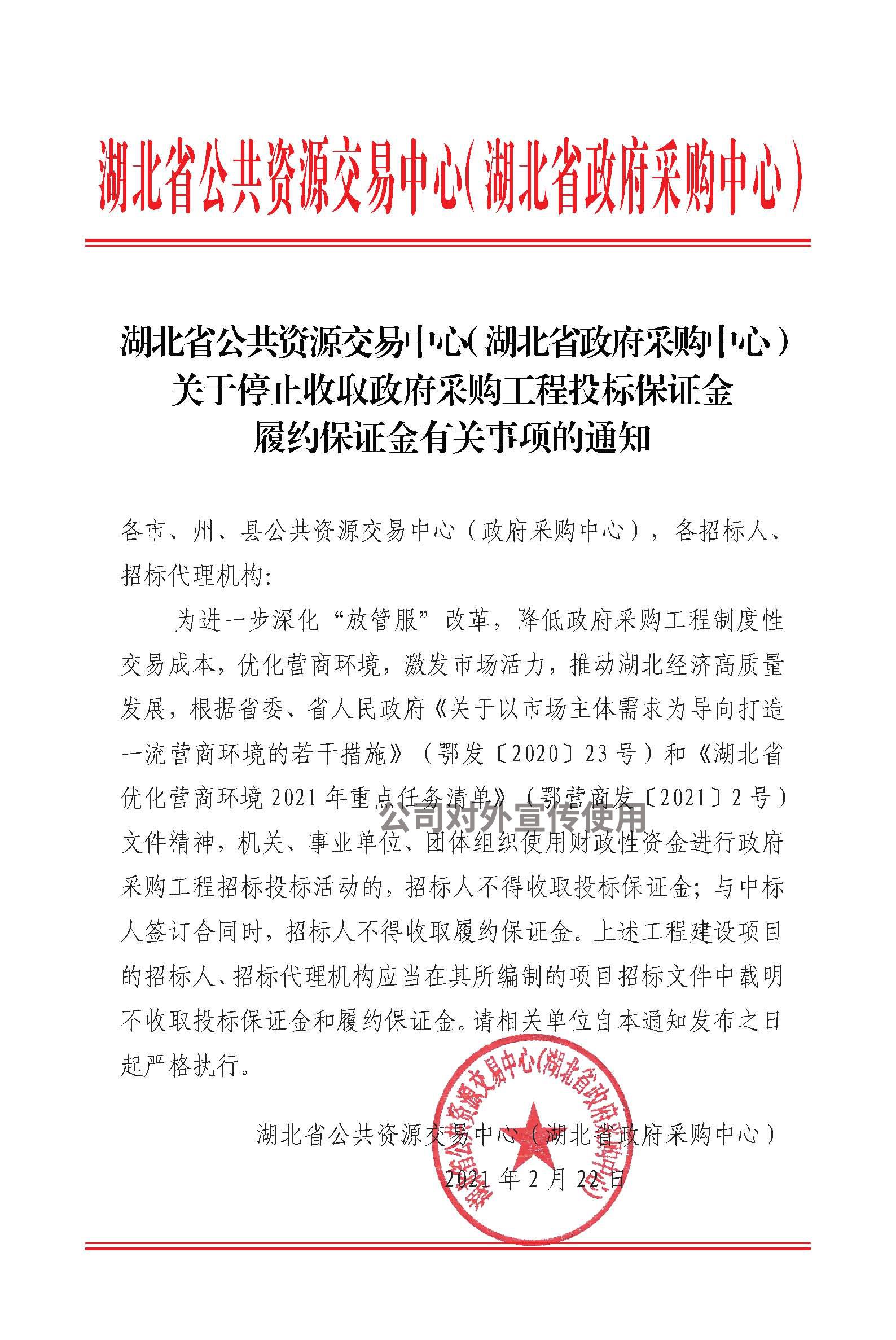 關(guān)于停止收取政府采購工程投標保證金履約保證金有關(guān)事項的通知
